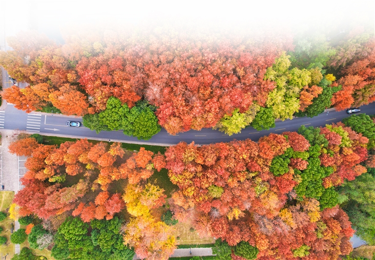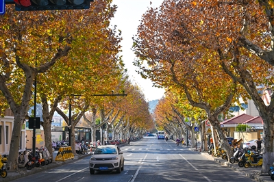 人民路两旁的梧桐,叶子已蜷成枯褐的手掌,却还密密地挂着,筛下碎金似的阳光,落在行人肩上,是一种迟暮的温存。拱秀路上,鹅掌楸的叶子正褪去青涩,染上明亮的姜黄。