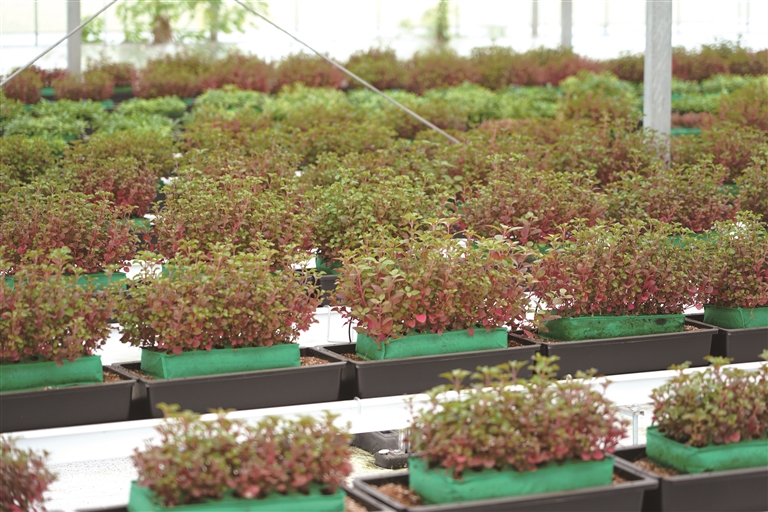 今年4月,三围村新引进了农业试验项目——养生盆栽菜种植。种植模式采用“基质+营养液”的无土栽培技术,以盆栽形式培育养心菜、紫背天葵、叶用枸杞等养生菜系列。据介绍,新培育的盆栽菜一盆可以卖到70元,预计亩产可超10万元。