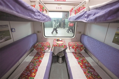 图为12月22日拍摄的K7041次列车的东北风情主题卧铺车厢。