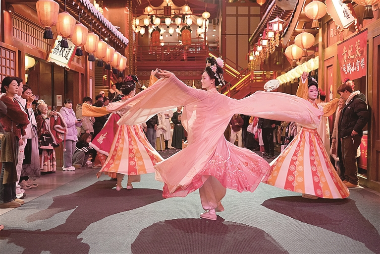 近期,经过焕新升级的西安长安十二时辰主题街区正式与游客见面。此次升级聚焦演艺、场景、互动等方面,进一步提升了街区的沉浸感、互动性与文化感染力,使游客在古城西安能够更具象地感受大唐风貌、领略大唐繁华。