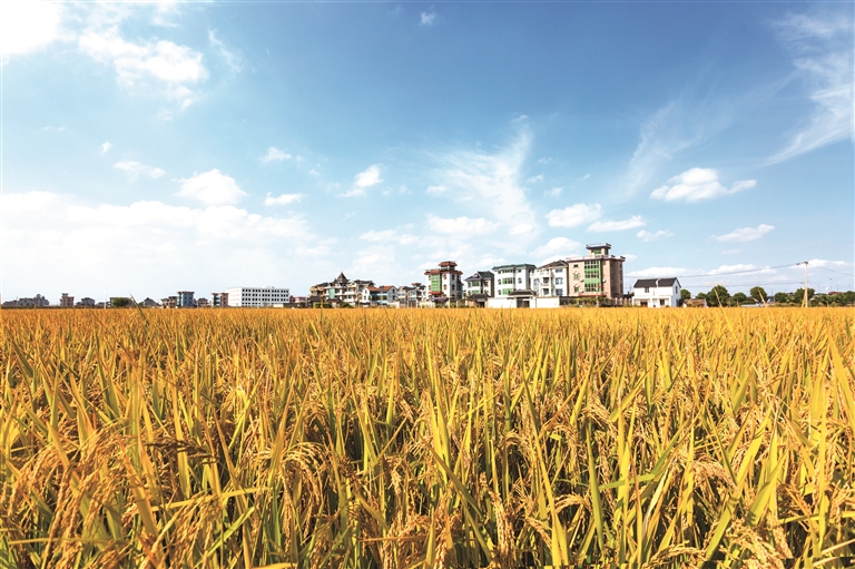 筑牢粮食安全根基是现代农业的首要任务。党湾镇持续开展耕地“非粮化”整治,粮食功能区认定占比位居全区第一,率先完成多田套合年度任务,累计清退粮食生产功能区内苗木超1.4万亩,推动土地规范化、规模化流转面积稳定在2万亩以上。科技赋能也让粮食产能持续跃升,今年梅东村早稻高产高效示范区亩产达819.6公斤,创下杭州市纪录,位列全省第二、全国前列。