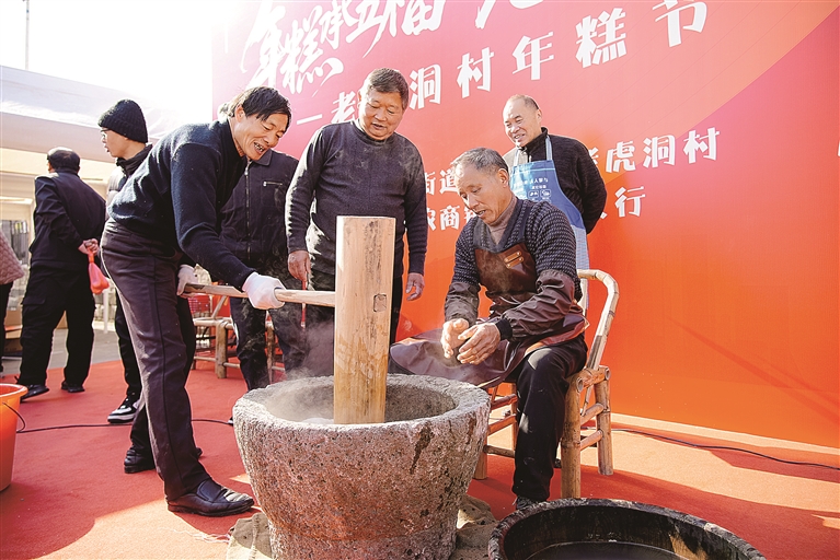 近日,闻堰街道老虎洞村第二届年糕节在村文化礼堂广场举办。活动以“年糕承五福 元旦聚乡情”为主题,设置古法搡年糕、写赠福字、便民服务等环节,还融入反诈宣传等内容,尽显传统年味与暖心关怀。
