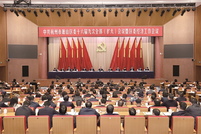 本报讯(首席记者 钱嫣 王荣 记者 项哲斌)昨日,区委十六届九次全体(扩大)会议暨区委经济工作会议举行。全会深入学习贯彻党的二十届四中全会精神和习近平总书记考察浙江重要讲话精神,全面落实省委十五届八次全会、市委十三届十次全会部署,审议通过了《中共杭州市萧山区委关于制定杭州市萧山区国民经济和社会发展第十五个五年规划的建议》。区委常委会主持会议。市委常委、区委书记孙旭东就《建议(讨论稿)》向全会作说明并讲话。区委副书记、区长姜永柱通报全区经济运行情况。
