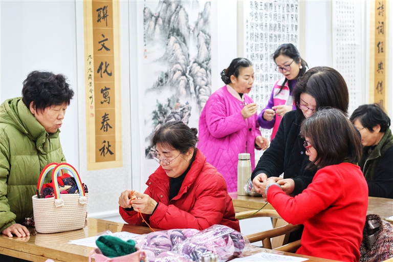| 蜀山街道郡乐社区“编织匠人”课程温暖启幕。编织达人施友芳老师现场教学,手把手指导居民制作冬日披肩。 首席记者 唐柯 通讯员 沈梦颖 |