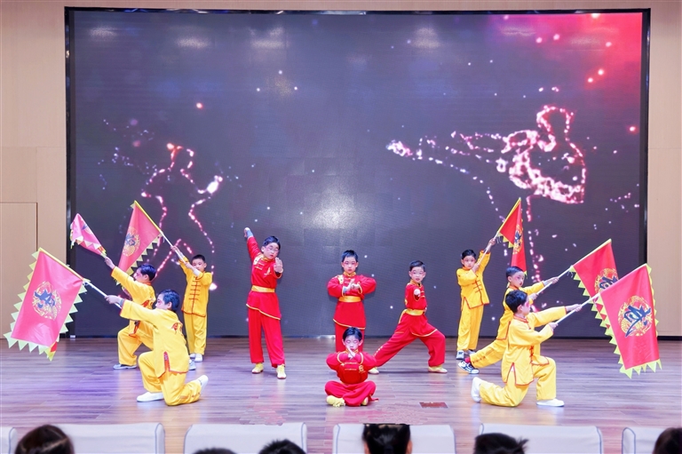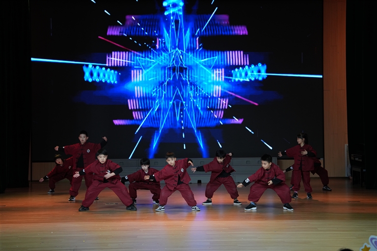 同时,“达人秀”选拔中脱颖而出的各类达人也闪耀登场。除了激昂的架子鼓演奏、刚劲有力的武术展示、幽默风趣的脱口秀、深情动人的独唱,英语歌谣表演、日常晨会优秀节目也在舞台上精彩亮相。200多位“小演员”共同构成了一幅多元而生动的童年艺术画卷。