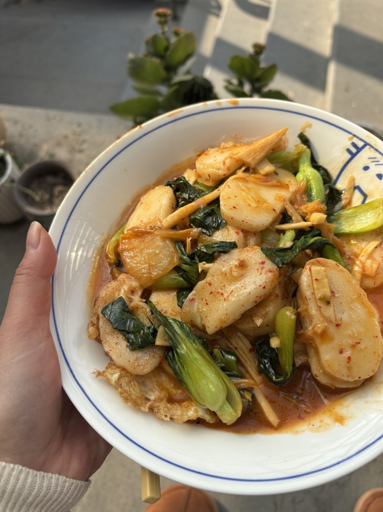 | @醒狮妹妹 冬日美味——年糕 糯叽叽的年糕加农贸市场新上的冬笋,再配上自家地里一朵朵鲜嫩的青菜,吃着自己炒的年糕,真幸福。 |