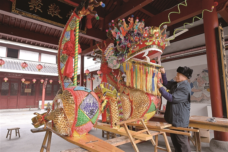应文化和旅游部邀请,国家级非遗——河上龙灯胜会的板龙将远赴北京,亮相中国非物质文化遗产博物馆。目前板龙已制作完成,即将发运。