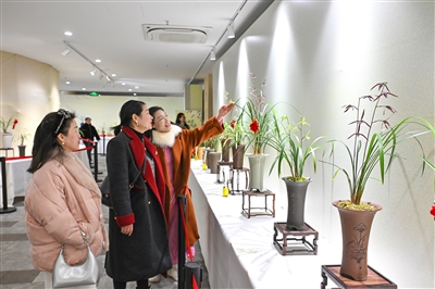 清寒之中,自有幽芳破寂。湘湖畔的腊梅已进入盛期,澄黄花苞密缀虬枝,那冷冽的甜香仿佛有了质感,随风浮动的每一缕,都在提醒着岁寒之深与新春之近。道旁的山茶花也迎寒盛放,硕大的花朵沉甸甸地压在墨绿的叶丛间,红若赤玉,白如凝脂,为素净的冬景点染上浓烈而端丽的色彩。移步室内,几案上的寒兰亦不负其名,于此时抽出亭亭花莛,紫褐花瓣缀以深脉,清雅绝俗,静吐微馨。