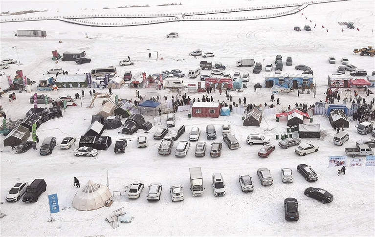 1月12日,为期一周的第四届东北露营大会在黑龙江省齐齐哈尔市梅里斯达斡尔族区的草原上开幕。来自全国各地的露营爱好者和游客踏雪而来,在严寒中体验冰雪露营的独特魅力与当地火热的民俗风情。 图为1月12日,在第四届东北露营大会的乡村集市上,游客们在逛大集。新华社发(李楠 摄)