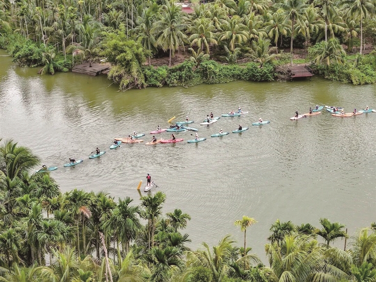 划桨板穿行原始热带河道,聆听虫鸣鸟叫,学习雨林生态智慧;攀上倾斜的椰树一跃入水,在欢笑中感受最野性的海岛玩法。