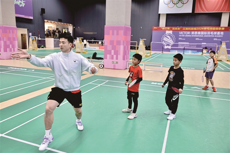 近日,在西电杭州研究院体育综合馆的羽毛球馆内。孩子们正跟着奥运冠军郑思维进行热身、步伐、挥拍等训练。这也是郑思维正式退役后开启的青训教育事业。奥运冠军投身于青少年培训,无疑将为萧山羽毛球运动注入新的活力。目前每天有150余名青少年到这里进行羽毛球的启蒙和专项训练。