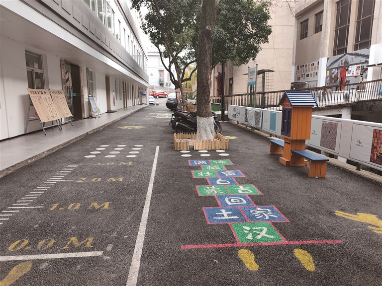 更深刻的变革,发生在空间功能的重构上。原先的杭齿医院大半闲置,看着空荡荡的大楼,这里能不能变成居民的“幸福空间”?为此,街道、社区多次与杭齿集团、产发集团协商,最终达成“国企 + 社区”联动模式,将其改造为全新的民生阵地。由街道对杭齿医院进行加固解危装修,在一楼保留医院基本功能外,留出80平方米的小间给社区办公,并把二楼改造成“邻里街坊”,三楼改造成从0—12岁的“儿童成长空间”。搬到小间办公后,社区将原先500平方米的宽敞办公室让出来,用于居民开展各类活动。