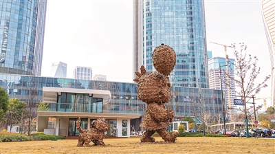 H07公园的草坪上,7米高的《慢慢》雕塑悄然伫立。牵着气球的小女孩带着小狗,好似在轻步慢行。都市CBD的紧绷,似乎都揉进了小姑娘牵气球的悠然里。在林立的高楼间,时光在此处随落叶一同变得缓慢而温柔,自有一份松弛惬意。