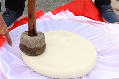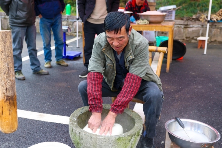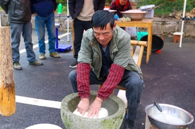 | @千言万语666 搡年糕,满满的小时候记忆 刚搡好的年糕热腾腾的,拿一小块尝尝别提有多好吃! |