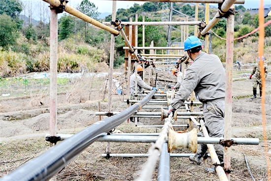 温州220千伏中东部电网补强工程架线施工需要跨越瑞安中西部区域4回110千伏线路,为最大限度地保障电力可靠供应,国网瑞安市供电公司多次组织各专业部门及施工、设计、监理等部门讨论优化施工方案,最终确定临时敷设500余米长的110千伏电缆线路作为供电电源。