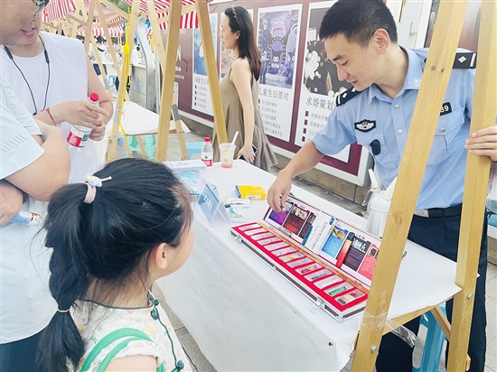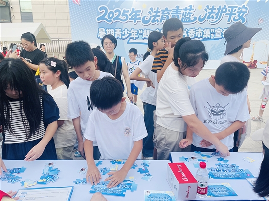 以法治之光护航青春成长,让普法教育“玩”出新花样。8月16日18时,由市司法局主办、市图书馆承办的2025年“法育青蓝法护平安”暑期青少年“普法夜市”暨“书香市集”宣传活动在市图书馆二楼广场拉开帷幕。此次活动让法治教育从“单向灌输”转向“双向互动”,在暑期为青少年呈上了一场“有料、有趣、有温度”的法治文化盛宴。