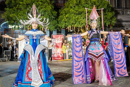 本报讯(记者 孙凛 潘益慧 王晓阳 魏帅)8月22日晚,瑞安忠义街历史文化街区热闹非凡,一场以畲族风情为核心的景宁文旅快闪活动在此精彩上演,为市民带来一场沉浸式的民族文化盛宴。
