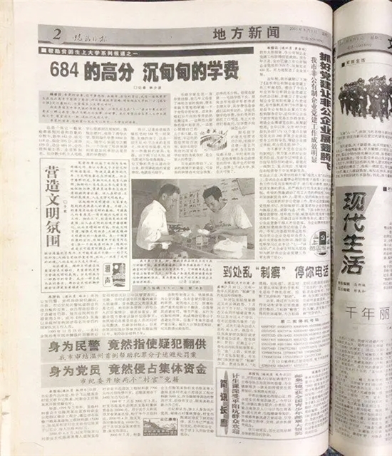 记得2001年7月底,跑民生线的记者林少波上报选题:一名瑞安中学的毕业生毛晓宇考上了清华大学,因家境清寒交不起大学学费。这是一个援助类新闻报道,作为媒体,我们可以呼吁社会爱心人士帮助解决。同时,我们也不禁追问:考上清华的优秀学生交不起学费,这只是个案吗?会不会还有更多学生也遭遇这样的困境?于是,时任瑞安日报社新闻部副主任的我,便接手了这个助学活动的新闻策划。