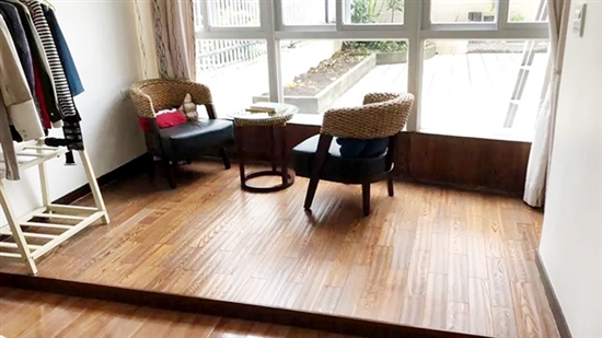房屋整体布局呈长方形,露台朝南,房东在此搭建了一个户外茶室,即使雨天也能享受温馨户外时光。