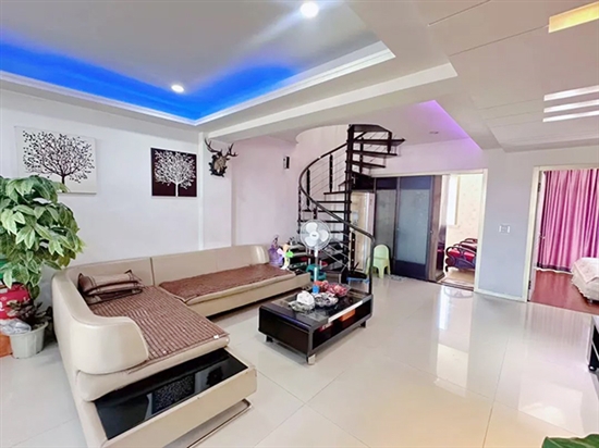 顶楼跃层结构,建筑面积166㎡。楼下面积110㎡,设计了3个房间,南北均有阳台,拓展面积大。楼上面积56㎡,室外露台面积约60㎡(不在产权证内),房东搭建了玻璃阳光房。
