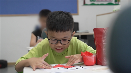 起初,王利利还有些担心壮壮能否适应校园生活,但壮壮的表现很快让她放下心来。虽然壮壮很少直视老师,偶尔坐不住时还会在座位上站一会儿,但他每次都能用不太标准的发音及时回答老师的提问,还能安静地跟着老师做手工,完成了自己的第一份“课堂作业”。王利利激动地说:“比我预想的要好很多,最让我欣慰的是看到他主动和陌生人沟通了,这在以前连想都不敢想。”