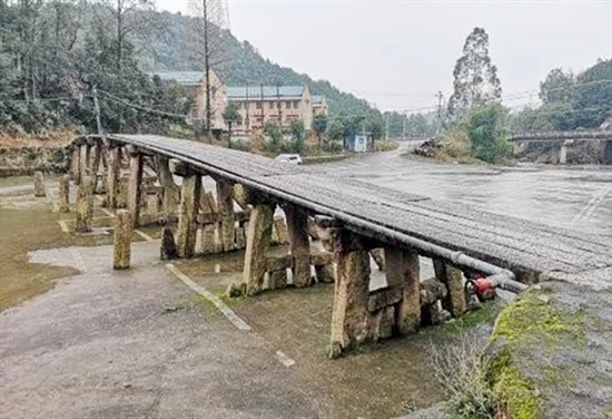 (注:永安桥,坐落在陶山镇陶北村沙门溪上,民国四年修建,河中筑有九排墩柱,为十跨石梁柱桥,又称“十间桥”,为瑞安市现存最完整最长的石桥。)