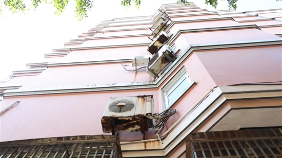 据物业管理人员介绍,2000年该小区业主入住,如今空调支架使用超10年的情况普遍存在。