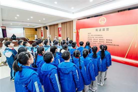 活动的最后一站来到了市司法局。在这里,律师为同学们详细讲解了宪法的地位和作用,让抽象的法条变得生动具体。在宪法宣誓环节,孩子们举起右手,庄严宣誓:“我宣誓:忠于《中华人民共和国宪法》,维护宪法权威,履行法定职责……”稚嫩而坚定的声音在会场回荡……