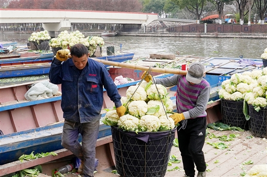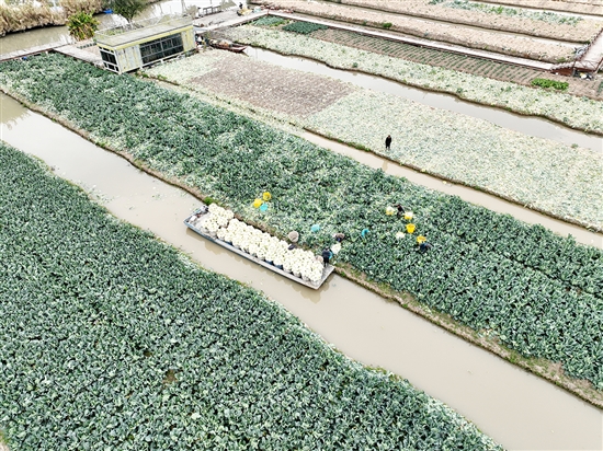1月29日,记者走进滨海都市田园花椰菜基地,田间地头随处可见农民忙碌采收的身影。一艘艘满载新鲜花椰菜的运输船从田间驶向合作社,经过分级包装后,花椰菜被发往全国各地。“目前基地日产量约400吨,忙的时候有六七百吨,每天发货40多车,销往全国各大市场。”瑞安市滨海花椰菜专业合作社负责人叶春友说。
