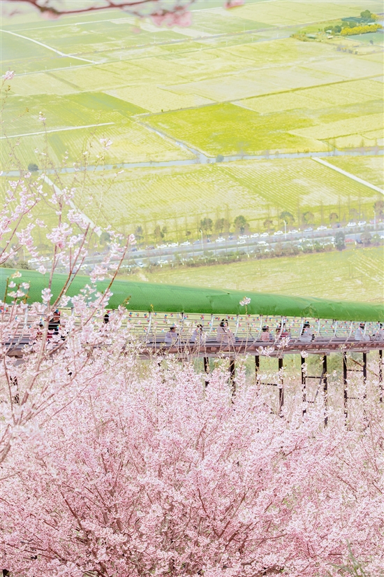 春日的桐浦,生机盎然,凤凰樱花谷内更是美不胜收。坡道两旁的樱花正值初花期,粉白相间的花瓣缀满枝头,春风拂动,花瓣轻轻摇曳,散发出淡雅的清香。