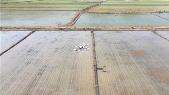谈及农机社会化服务,吴董淑自豪地介绍:“周边大概400来亩农户的耕地、插秧、育种工作,都是由我这边提供服务,还包括无人机撒肥料、喷洒农药等一条龙服务。”吴董淑告诉记者,无人机一天能作业300亩,而一个人工一天最多只能完成三四亩,还没法保证施肥、施药的均匀性。“无人机装载25到30公斤肥料或农药,喷洒起来十分均匀,作业效率和效果都远超人工。”