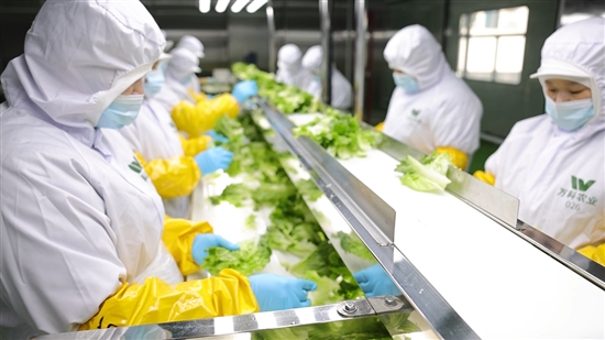 过去,万科农业老厂房的面积只有500多平方米,由于空间限制,各个生产环节以模块的方式组成,在加工过程中容易产生交叉污染,也大大限制了企业的发展。现在,新车间的面积扩大了4倍,实现了流水线连续作业。前后的产出对比相当明显,光是损耗率就直接降低了5%以上。“我们现在生产2500公斤,在老厂里要8到10个小时,搬到新厂后,只需要3到4个小时。”雷大锋说。