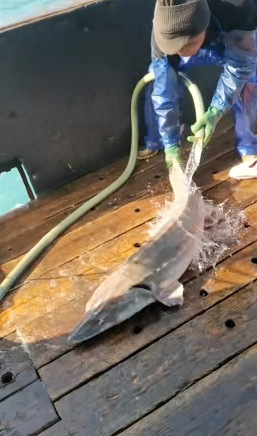 本报讯(记者 张森 通讯员 缪云亮)3月13日8时28分,浙瑞渔12189船在中韩交界水域作业时,意外捕获一尾国家一级保护动物中华鲟。该船船长林候式发现后立即停止作业,妥善处置后将其顺利放归大海,以实际行动践行生态保护责任。