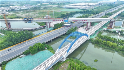 本报讯 昨天,湖州交通集团所属如通苏湖城际铁路跨沪苏湖特大桥156号墩完成转体施工。据悉,这是浙江省内首次开展城际铁路上跨高铁的连续梁转体施工,该转体桥重约8000吨,刷新我省城际铁路转体桥吨位纪录。