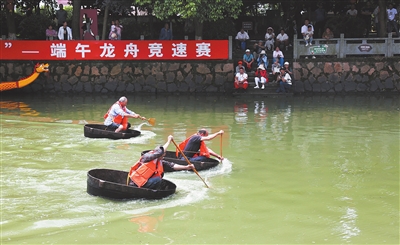 江南水乡人民欢庆端午的习俗源远流长,内涵丰富。活动在欢腾的舞龙表演中拉开序幕,赛龙舟、划菱桶、水上拔河等传统水上运动轮番上演(见图 记者 施莉娜 摄),营造出浓厚的节日氛围。现场,还举行了“道德典型”展、趣味打卡、“艺术乡建”流行歌手走基层等活动,吸引众多市民参与其中,共享端午文化盛宴、共筑精神文明高地。