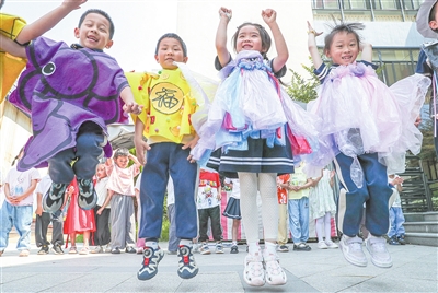 德清县钟管镇垃圾分类办联合一家幼儿园日前开展“低碳环保 从小做起”主题活动。通过废旧物品手工制作、垃圾分类小游戏、环保时装秀等形式,引导孩子们养成保护环境、垃圾分类的好习惯。记者 王树成 摄