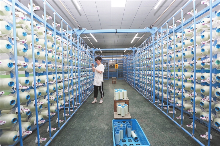 在丝绸之路集团湖州永昌丝绸有限公司生产车间,连日来,30多台提花机和剑杆机不停运转,国风面料的订单已排起了长队。 记者 施莉娜 摄