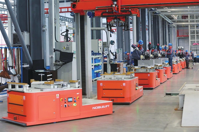 省科协科普部、省科企新质生产力研究院近日公布首批浙江省新质生产力科普体验馆点认定名单,我市诺力智能物流装备基地榜上有名。该基地由智慧物流场景、智能制造展示、绿色制造展示、物流装备科技发展史、装备制造工厂体验以及企业文化建设等内容组成,旨在向社会公众普及智能物流装备、智能制造相关知识。图为车间生产现场。 记者 邵鼎 摄