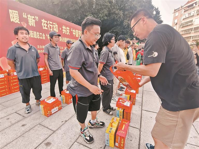 本报讯 (记者王丽虹 文/图)昨日下午,鲤城海滨街道总工会联合新门社区工会联合会在市区芳草园广场开展“暖‘新’在行动·共庆‘中国节’”关心关爱新就业形态劳动者系列活动。