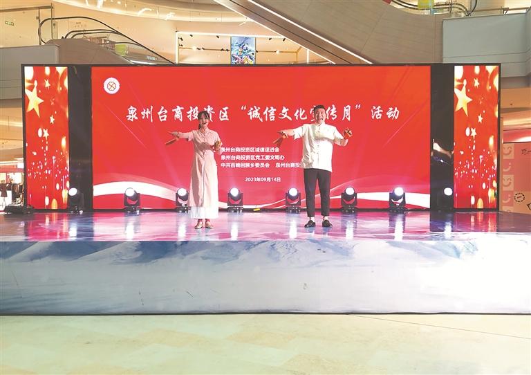 本报讯 (记者黄雅珊 通讯员涂雨泓 文/图)“这世间道理千万条,做人诚信是头一条。做生意,讲信用,质量第一要保证……”日前,在泉州台商投资区举办的“诚信宣传月”仪式上,脍炙人口的闽南语快板《做人诚信头一条》引得掌声阵阵。记者了解到,台商区诚信促进会本月在全区开展了针对五大群体的主题宣传活动。