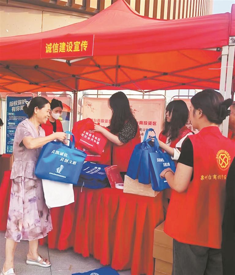 记者了解到,自台商区诚信促进会成立以来,协会采取多种形式开展宣传。如组织专题走访,建立多种形式的宣传平台,联合相关职能部门开展宣传等。“诚信建设是社会文明建设的基础。这个月我们组织开展诚信宣传活动,受众涵盖社会的不同层面,宣传效果明显。”协会秘书长陈汝端表示,今后还将结合台商区的区情民意,采取从群众中来到群众中去的方式,多开展喜闻乐见又接地气的宣传活动,进一步提高诚信宣传效果。
