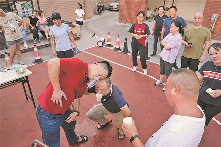 27日下午,泉州市南渠供水有限责任公司工会联合泉州市山美灌区水资源调配中心工会,开展“迎中秋 庆国庆”职工联谊趣味运动会,营造团结协作、健康向上的节日氛围,引导干部职工树立健康运动意识。运动会设有气球毛毛虫、集体跳绳、定点投篮、纸杯传水等项目。参赛队员齐心协力,奋勇争先,充分发挥了团结友爱、拼搏互助的精神,展示了职工奋发向上的良好风貌。