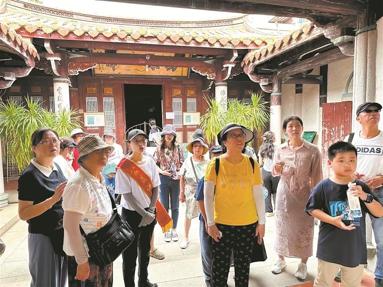 连赞梅平时是一名导游,后来加入了世遗泉州志愿讲解员。当天上午,她在这里有两场免费志愿讲解服务。她说,泉州的文化底蕴深厚,尤其是申遗成功后,知名度和热度大幅提升。她每次开展志愿讲解服务都很受欢迎,在提供讲解服务的过程中,也会提醒游客一些注意事项,让游客文明出游。