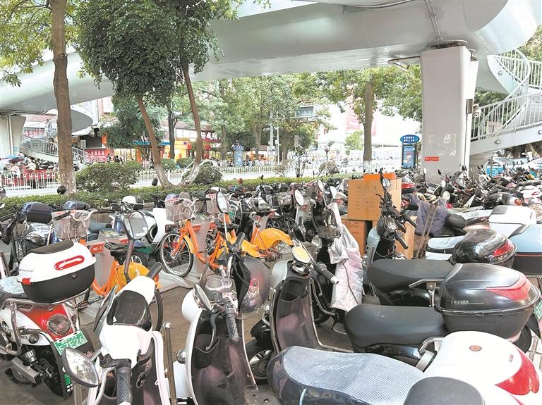 本报讯 (记者陈灵 王丽虹 文/图)昨日,泉州各个旅游景点依旧火热,大型商超也是人头攒动。记者发现,部分景点和路段存在电动车乱停放现象,影响游客出行。