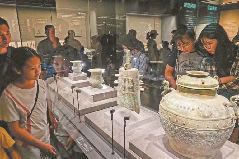 参观者在广西壮族自治区博物馆观看《广西古代文明陈列》展览(新华)