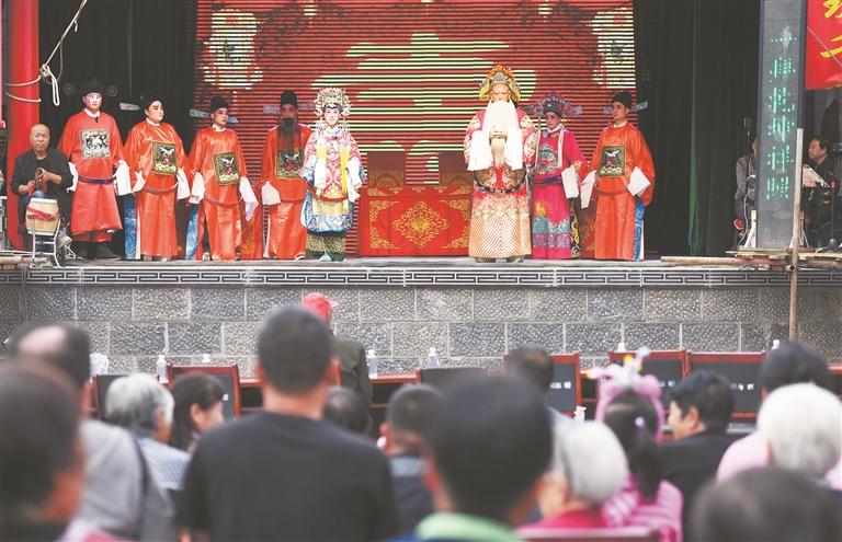 当地群众在河北省石家庄市井陉县张家庄村观看井陉晋剧团表演的传统曲目《满床笏》 (新华)