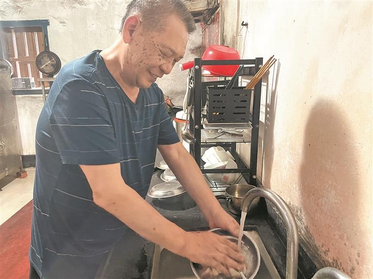 快到午饭时间,85岁的吕淑英忙着给家人做饭。她到菜地里利落地折几把蔬菜到洗菜池,打开水龙头,看到哗啦啦的水冲洗着菜叶,笑容绽放在她的脸上。“以前洗菜的水都不舍得流走,得盛起来,用来浇菜、拖地。”她说,过去,她和另外4户邻居合起来找山泉水,再用镀锌管引到家里。平时只有她和三儿子在家,都要“一水多用”。后来水量变小,供应不了5户,缺水时还得找邻居讨一点。