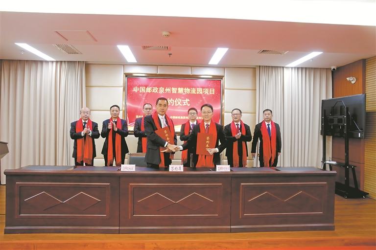 为进一步加强基础设施建设,1月28日,泉州邮政与石狮市政府举行智慧物流园签约仪式,明确在泉州石湖港投资10亿元建设物流园区。园区用地面积270亩,建筑总面积18万平方米,将围绕邮政自有核心业务,布局建设集邮件处理、仓储、海关保税、跨境电子商务、国际互换邮件等为一体的邮政服务综合体,并通过服务企业集聚优势效应,带动相关生产企业及要素资源落户泉州,填补泉州跨境电商快件监管中心的空白,助力泉州实体经济通过跨境业务拓展国际市场,大幅提升城市功能品质。