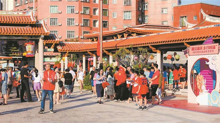 国庆期间,由石狮市湖滨街道主办的“遇见湖滨·乡约四端”乡音文化艺术节暨2023年“我们的节日·中秋”主题活动在湖滨街道曾坑社区蓉园文化广场举行。木偶戏、拍胸舞、高甲戏、火顶公婆轮番上演,为群众带来丰富的非遗文化表演大餐。除了观赏传统艺术表演,现场观众还能进入文化艺术互动区,参与挑战任务,打卡糖画、捏面人、竹编、剪纸等多个项目,沉浸式体验中国优秀传统文化。(洪鸿吟 詹伟志 文/图)