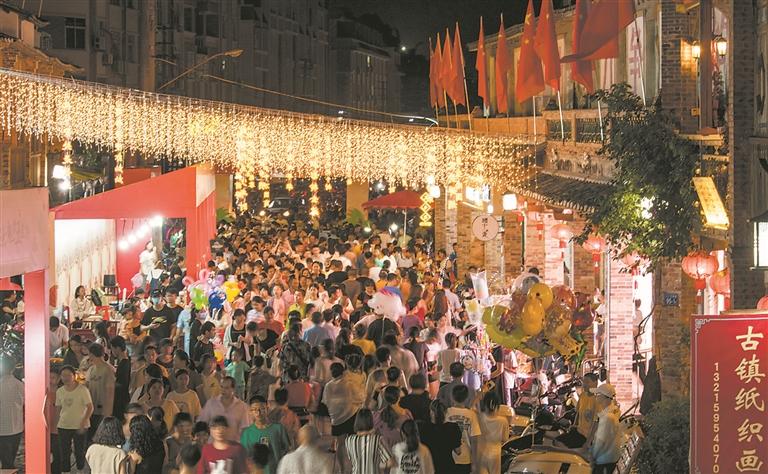 除了非遗文化项目广受游客欢迎,五里古街本身的建筑风格以及丰富的文旅活动也获得了游客的认可。节日期间,这里开展了风情市集、音乐演出、非遗展览、特色好物等充满烟火气息的活动,接待游客约15万人次,带动旅游消费约1500万元。
